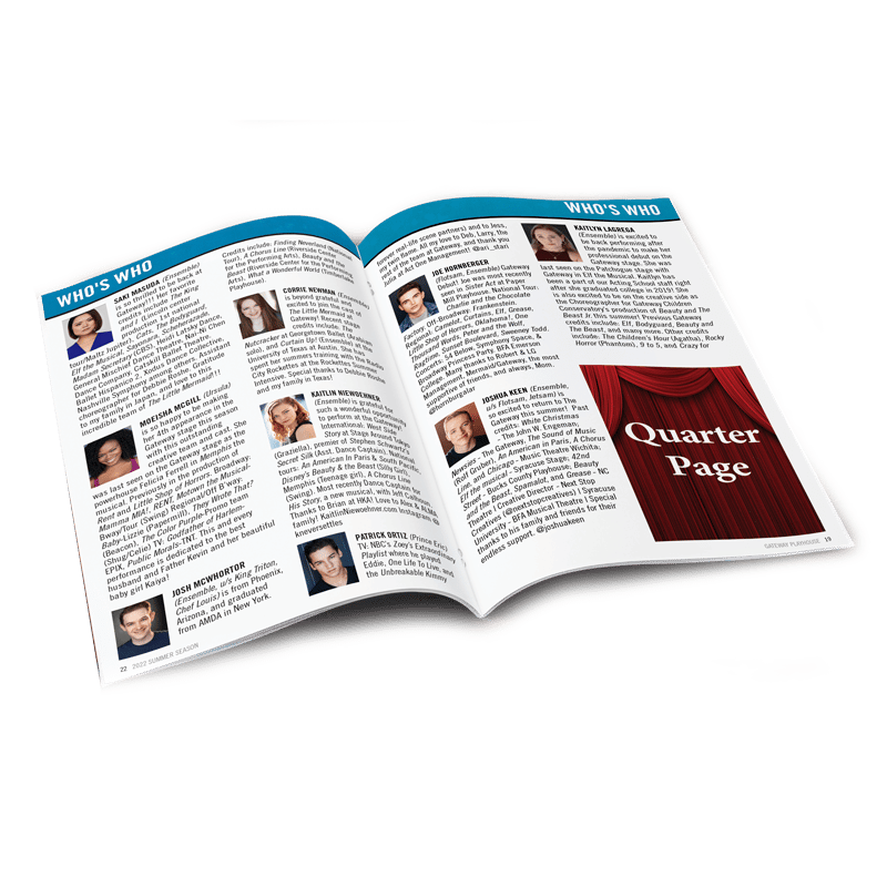 $400 – Quarter-page color ad in ALL Mainstage & Academy programs